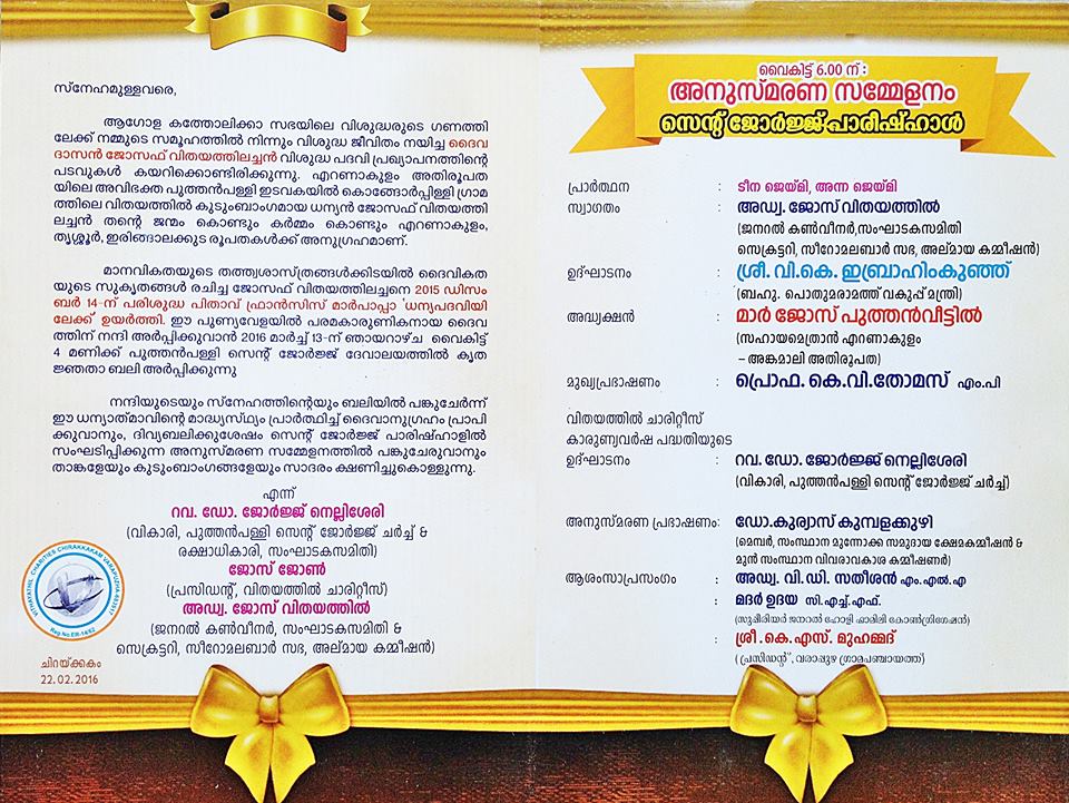 Organized by: Vithayathil Joseph Antony