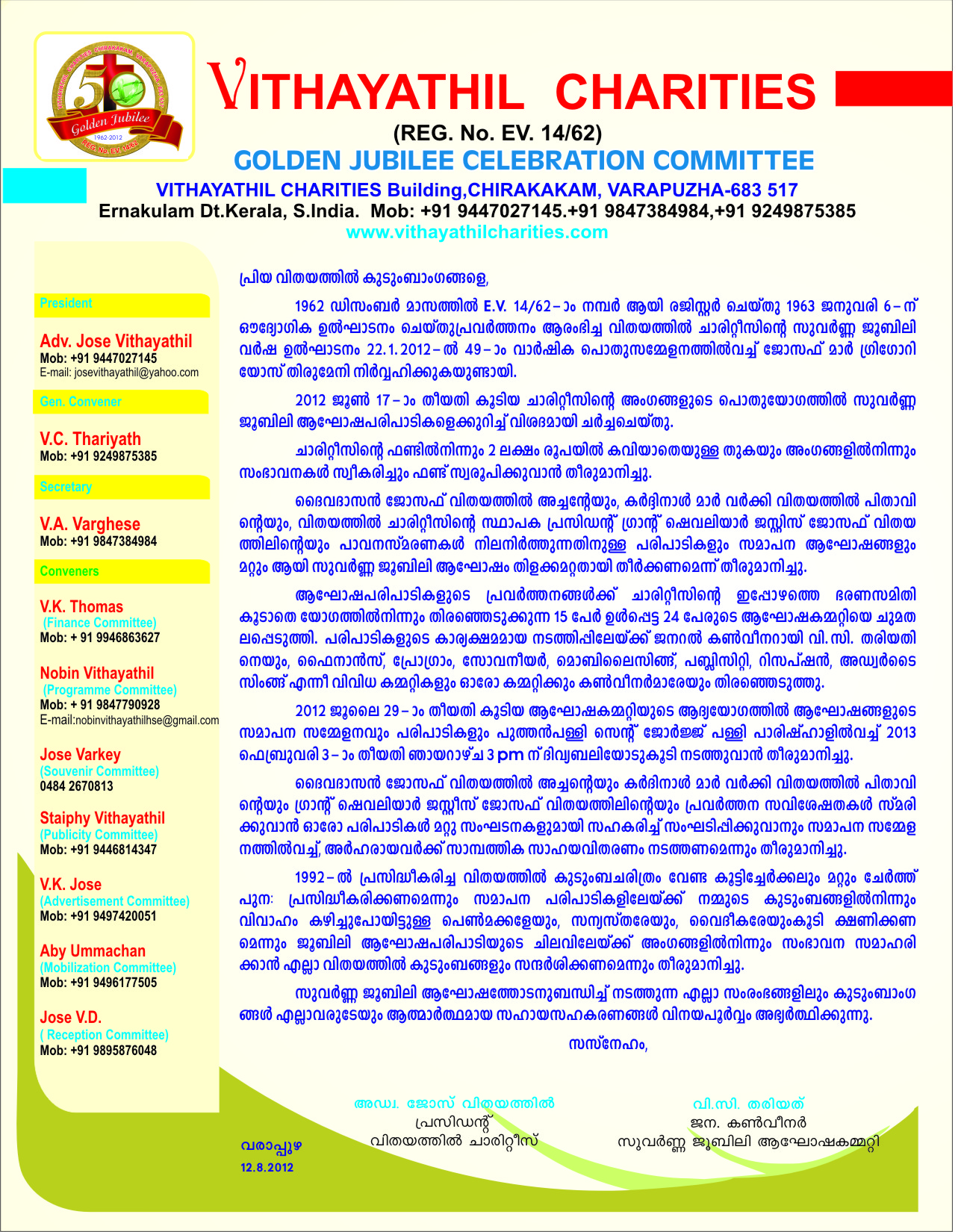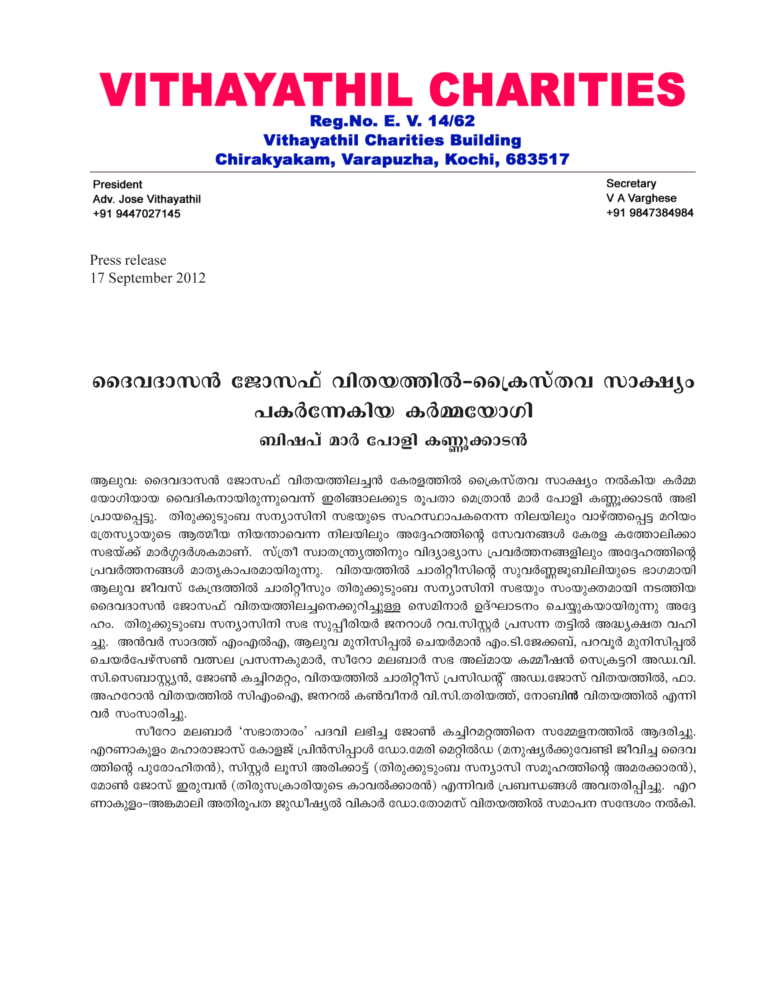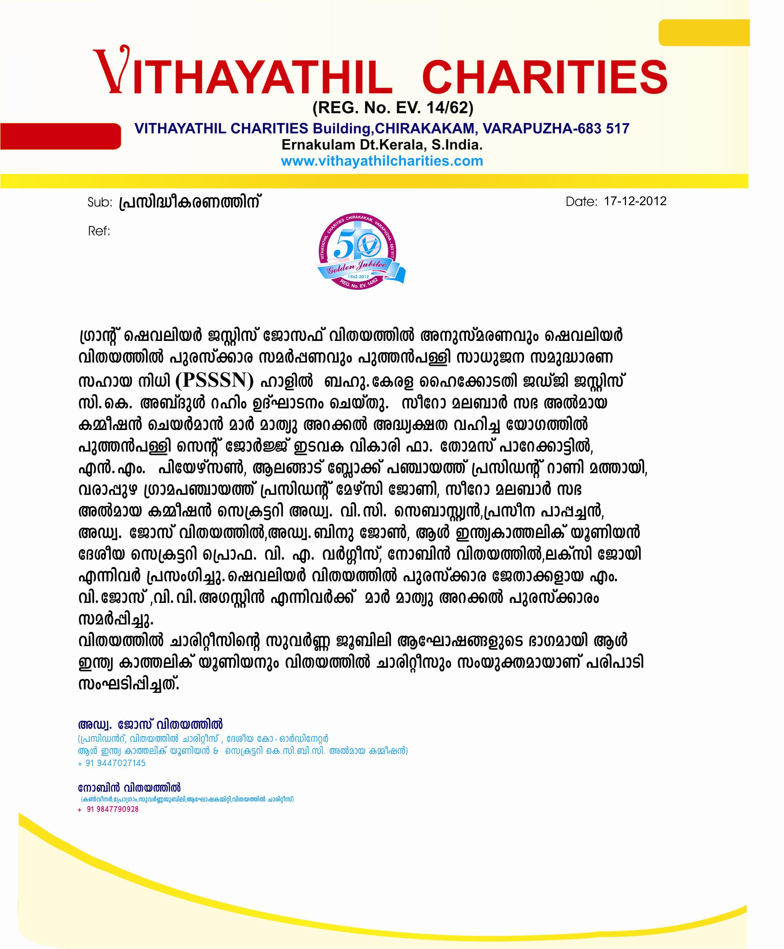 Vithayathil Charities 62nd Annual Meeting
